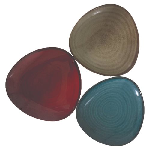 צלחת קינוח מלמין בצבעים אפור/אדום/טורקיז קוטר 15 ס"מ