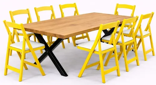 שולחן דגם יוגב חשוף+כיסא מתקפל צהוב