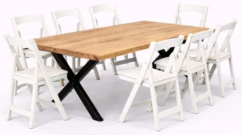 שולחן דגם יוגב חשוף+כיסא מתקפל לבן