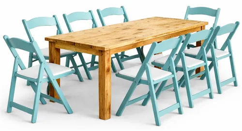 שולחן חשוף טבעי 4 רגליים+כיסא מתקפל תכלת