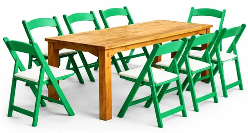 שולחן חשוף טבעי 4 רגליים +כיסא מתקפל ירוק