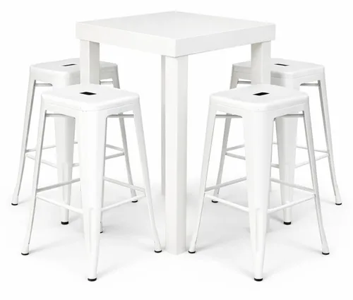 שולחן בר לבן 4 רגליים+כסאות בר סטול לבן