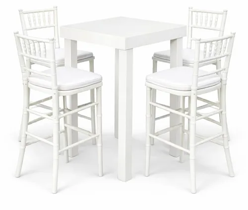 שולחן בר לבן 4 רגליים+כיסאות בר צ'ברי לבן
