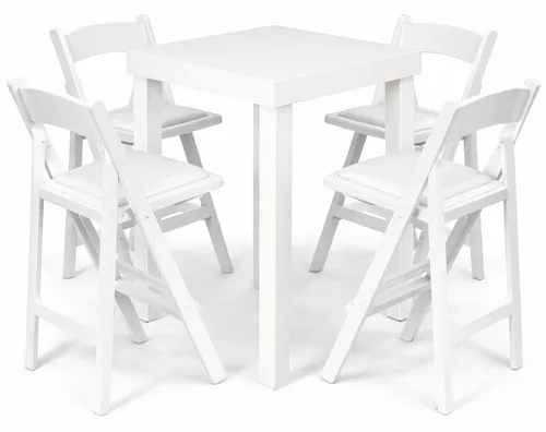 שולחן בר לבן 4 רגליים+כסאות בר מתקפלים לבנים