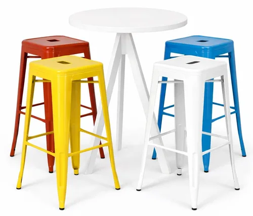 שולחן בר פריז לבן+כסאות בר סטול בצבעים