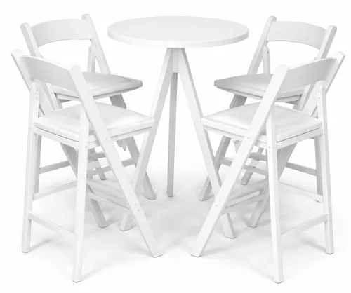 שולחן בר פריז לבן+כסאות בר מתקפלים לבנים