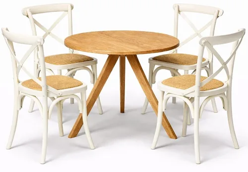 שולחן טוסקני טבעי+4 כסאות איקס לבן