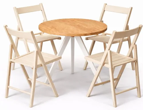 שולחן טוסקני רגל לבנה + 4 כסאות שלבים שמנת