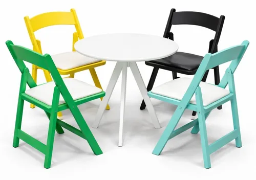 שולחן פריז לבן קוטר 70 ס"מ + 4 כסאות פסטל בצבעים