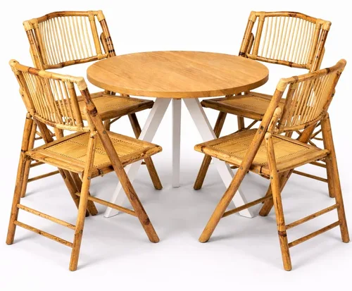 שולחן טוסקני רגל לבנה +4 כסאות במבוק