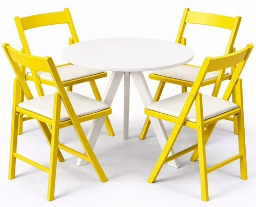 שולחן פריז לבן קוטר 70 ס"מ + 4 כסאות מתקפל צהוב
