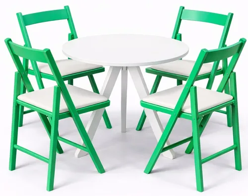 שולחן פריז לבן קוטר 70 ס"מ + 4 כסאות מתקפל ירוק