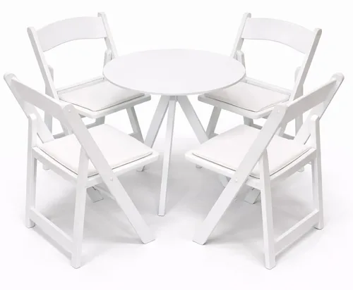 שולחן פריז לבן קוטר 70 ס"מ + 4 כסאות מתקפל לבן