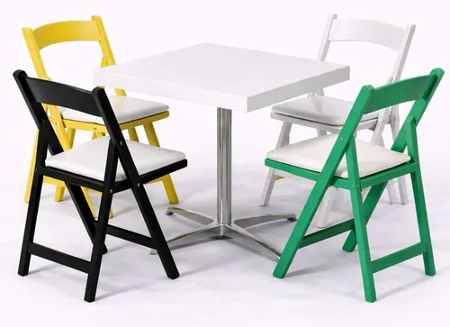 שולחן לבן רגל ניקל + 4 כסאות פסטל בצבעים