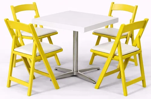 שולחן לבן רגל ניקל + 4 כסאות מתקפל צהוב