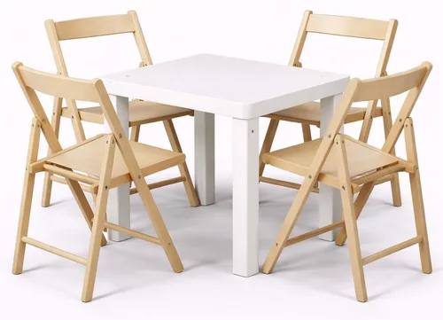 שולחן לבן 65/65 + 4 כסאות שלבים שמנת