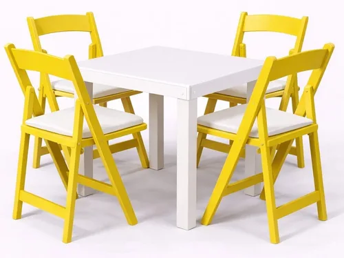 שולחן לבן 65/65 + 4 כסאות מתקפל צהוב