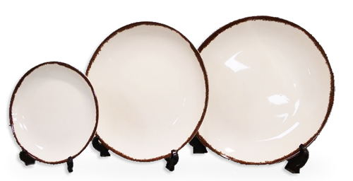 צלחת מעוצבת צבע קרם עם פס חום משופשף מסביב