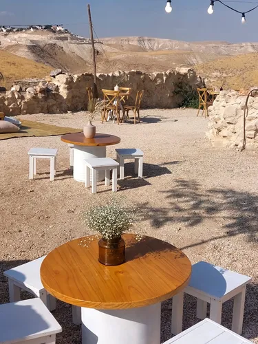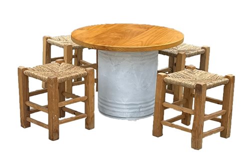 שולחן חבית נמוך טופ עץ + 4 שרפרף בדואי