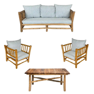 המערכת ישיבה מגיעה עם שולחן טולום עץ טיק 100/60